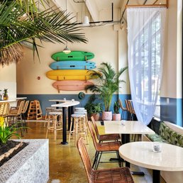 Girls group of five. More of "coffee talk" than brunch FUEL egg cheese biscuit with hibiscus lemonade. ATMOSPHERE visually fun vibes with swings for seating. Beach decor, vibrant colors. SERVICE kind baristas. She even brought out my order because I'm unable to carry items. Essentially, this place is not known for food/meals; more for drinks & pastries. Recommend for small groups, dates, biz meetings, & families.